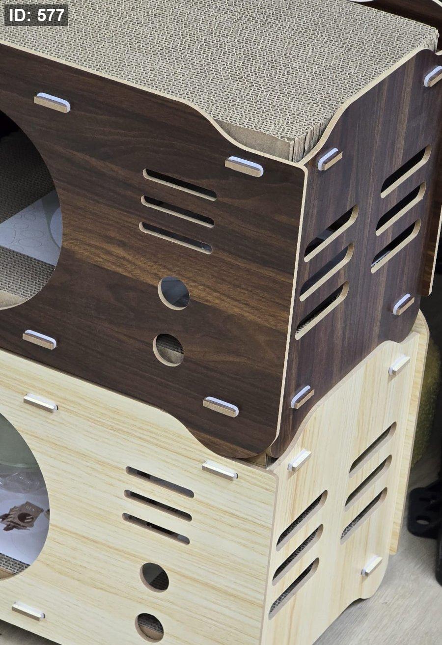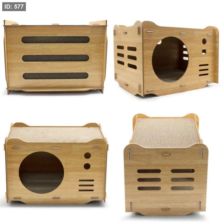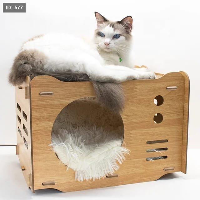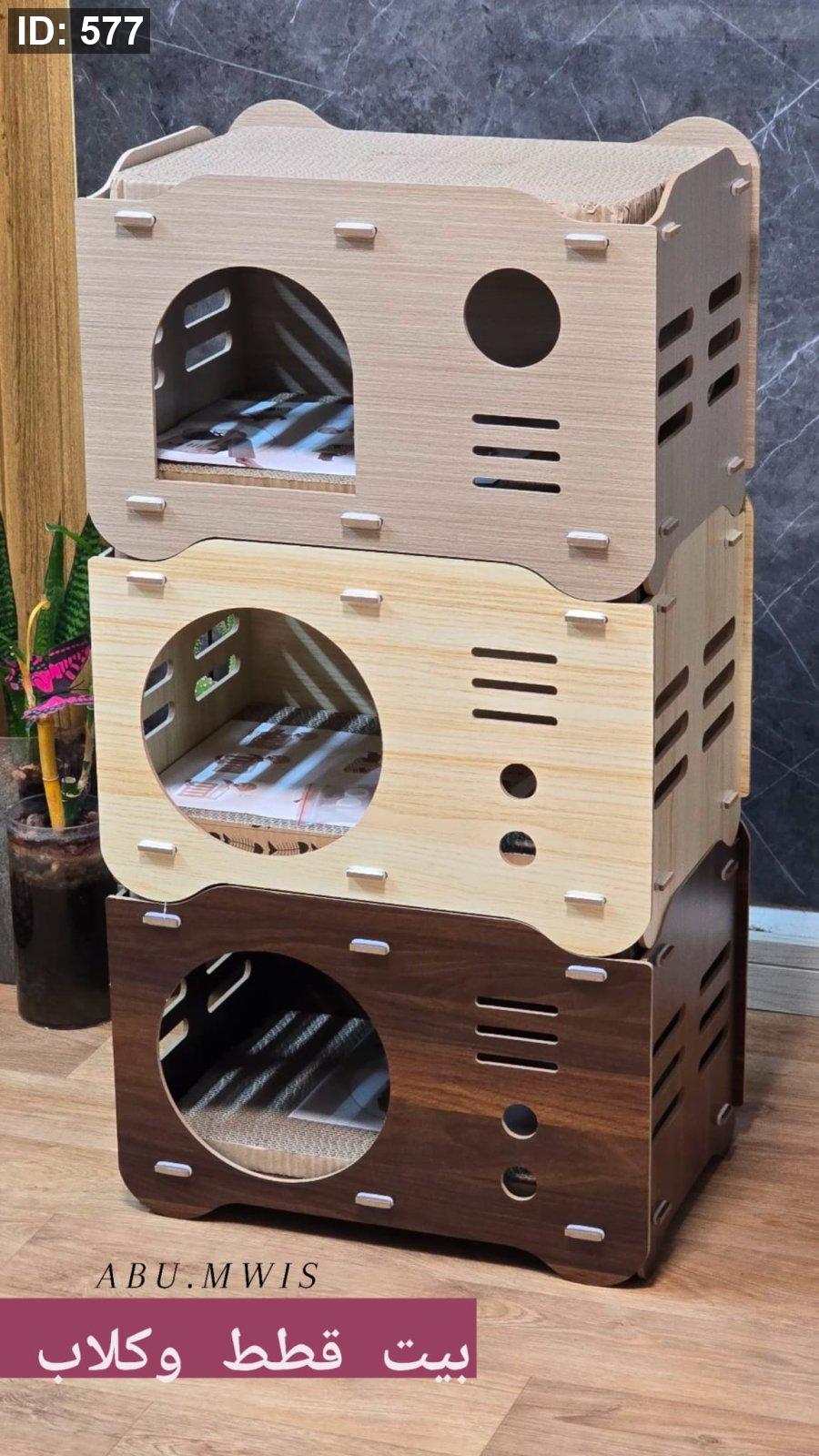 بيت قطط وكلاب خشب + خداشة (باب دائري )