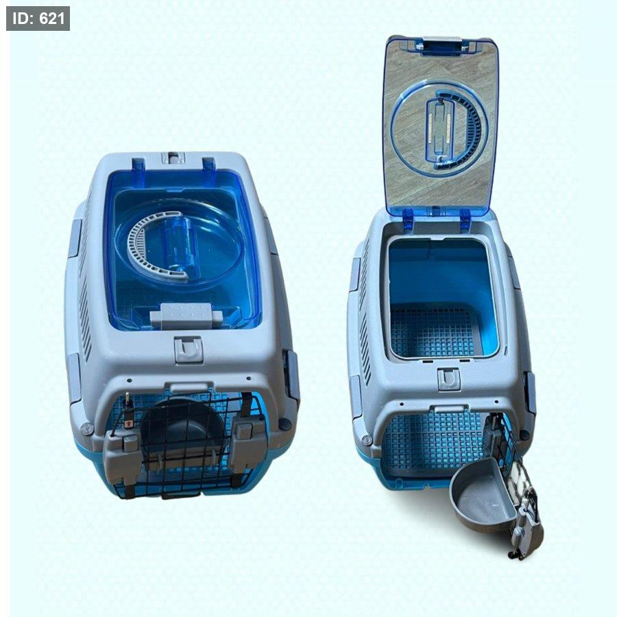 نقالة قطط وكلاب مع باب سطحي ومأكلية